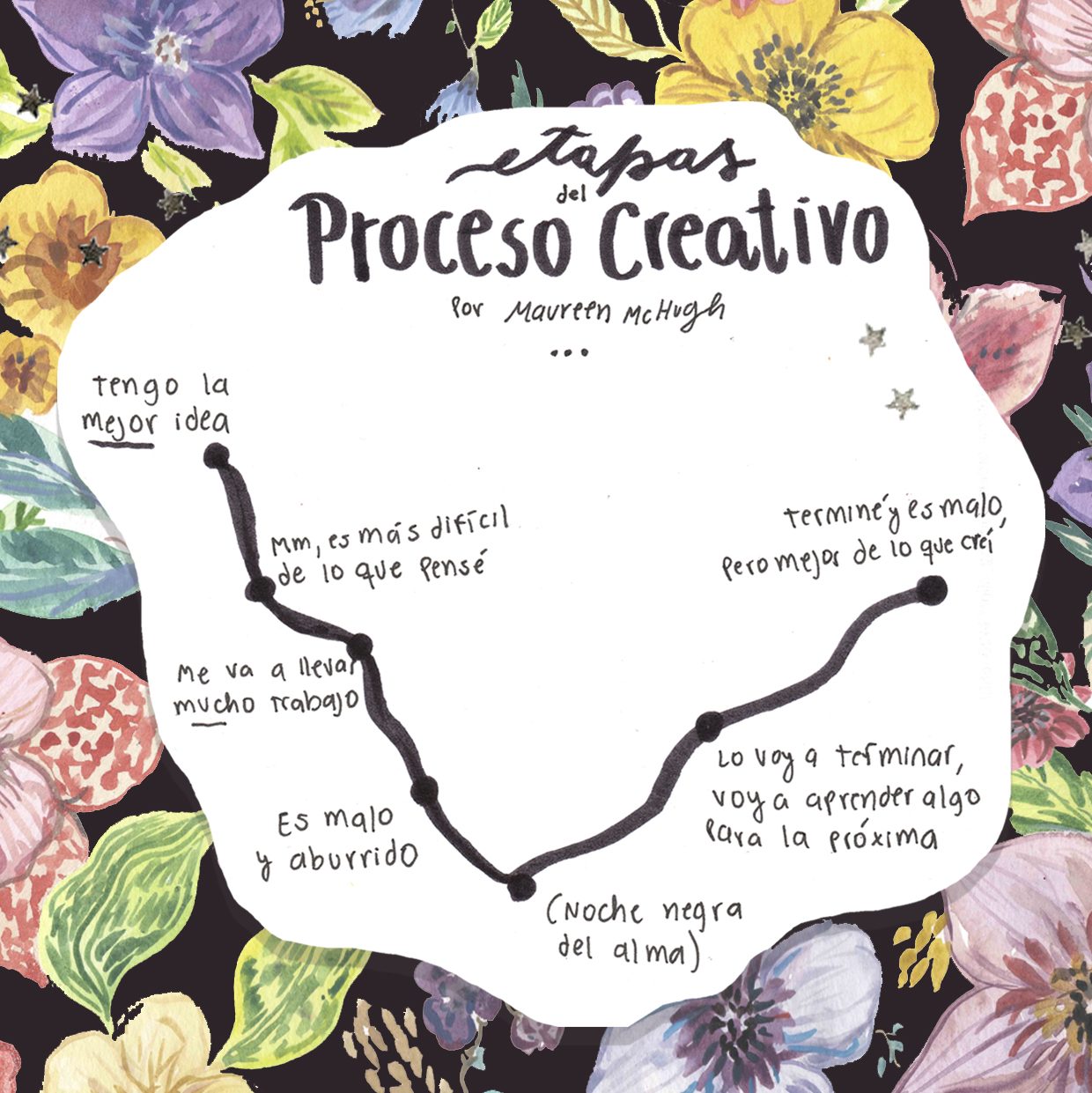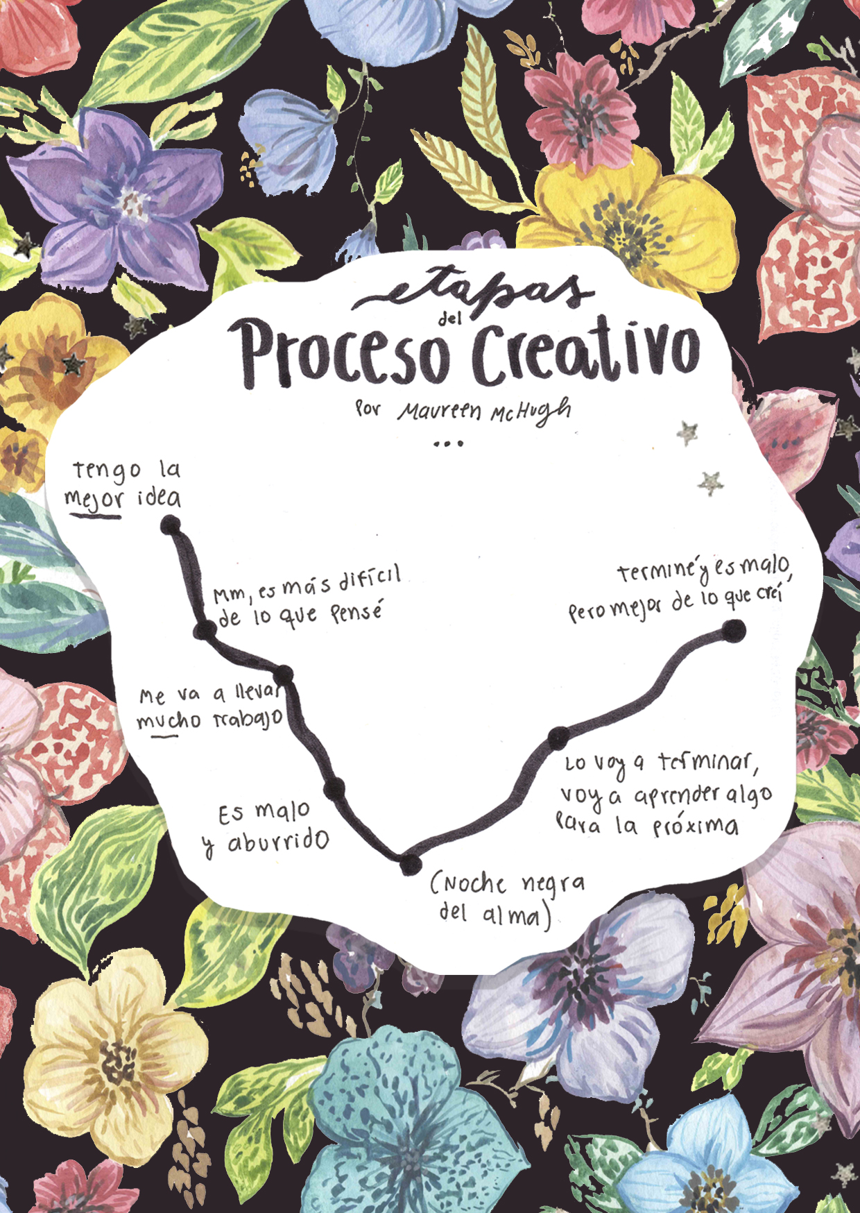 Antes de empezar, un pequeño recordatorio: el proceso creativo no es lineal, de hecho, es bastante desordenado y no siempre estamos motivadas, inspiradas o conectadas. De a poco nos vamos a amigar con eso.