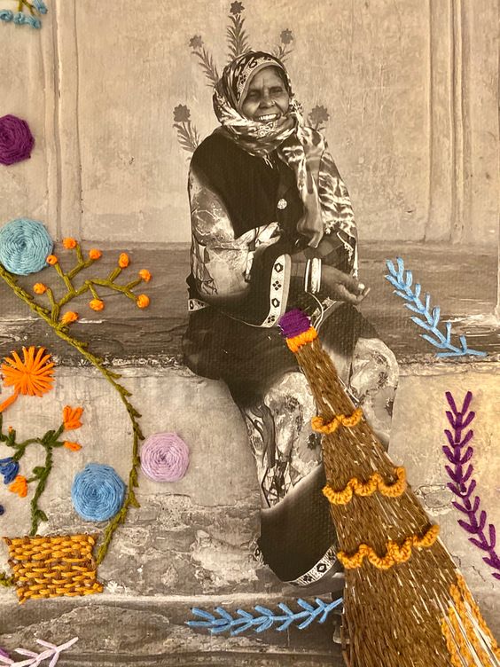 No tiene que ser una obra de arte, solo un experimento en el laboratorio creativo que es tu sketchbook: un espacio para jugar y probar. Quizás empieces con un hilo, veas que sale, sumes un retazo… divertite, eso es lo importante del proceso. A todo esto, admito que soy muy mala costurera, ¡me divierte mucho ver qué sale!