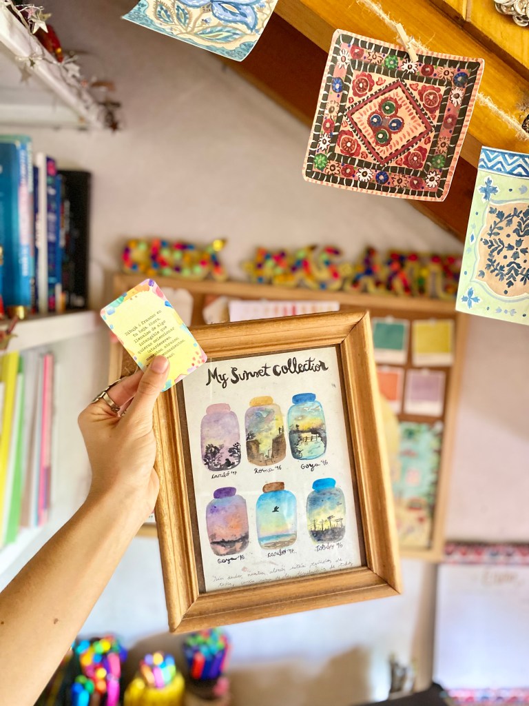 El disparador creativo de hoy está inspirado en una carta del mazo de cartas creativas: dibujá 6 frascos en una hoja de tu sketchbook. Ahora, llenalos de algo intangible que quieras coleccionar (atardeceres, momentos, abrazos, aromas, pensamientos, ideas; lo que quieras).