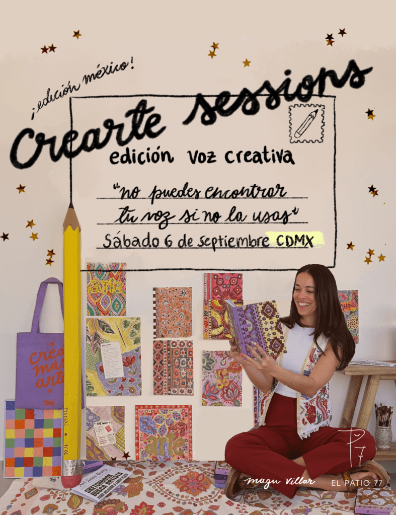 Las Crearte Sessions son espacios para cultivar tu práctica creativa, conectar con otras mujeres en tu sintonía y expandir a tu artista interior. Y después de haber compartido estas sessions en Argentina, España y Chile, estoy muy entusiasmada de llevarlas por primera vez a México.